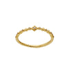 Lika harmonisk som en mild melodi, har Ria-ringen från Maanesten en delikat sträng av gyllene former prydda med glittrande zirkonier som glittrar som de renaste tonerna i en tidlös melodi.