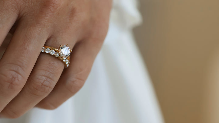 Solitärring kan också kallas enstensring och är väldigt populärt val av förlovningsring men kan också bäras som en vigselring. Du väljer vanligvis mellan en fyrklo eller en sexklo som omger diamanten. En ring med fyra klor gör så att diamanten syns mer då klorna tar upp mindre plats. Vid val av en mindre diamant, 0,40 ct eller lägre, kan fyra klor vara ett bra val då det annars kan upplevas som för mycket metall runt diamanten. En ring med sex klor kan ge ett mer symmetriskt utseende och även ge ett bättre grepp om diamanten. Ett tips är att välja en ring med sex klor vid val av en större diamant. Önskar du en solitärring med sex klor kan du kika närmre på Adèle och Clementine. Om du vill ha en ring med fyra klor är Florens och Céline populära val.