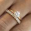 Adèle passar fint tillsammans med vår vackra alliansring Bella 1,8 Vigselring som har samma proportioner i ringen.
